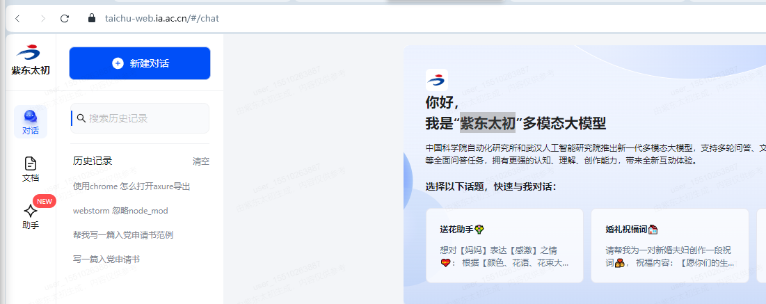 6. 紫东太初 https://taichu-web.ia.ac.cn/#/chat (中国科学院自动化研究所和武汉人工智能研究院)